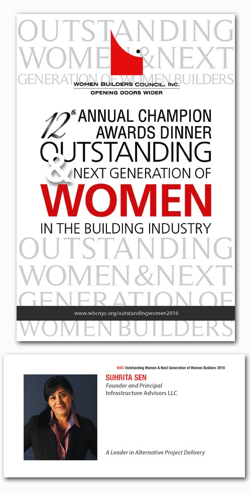 As a published author and presenter with a strong industry presence, she has received recognition as a subject matter expert globally. As an adjunct professor at Columbia University & CUNY, she has taught graduate courses in infrastructure and real estate. Suhrita is also an alumnus of Columbia University, and a PMP. She was selected as ‘WBC’s outstanding women 2016’ in Alternate Delivery, by the Women Builders Council, New York, and awarded ‘Leading Women in Global Advisory’ by IWLF Mumbai, India.